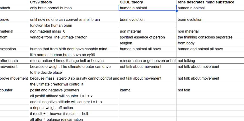 COMPARASION MEANING CY99 theory , SOUL, AND RENE DESCRATES MIND SUBTANCE